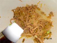 4.锅中放入植物油适量,放入肉丝炒散,炒至肉丝变色盛出备用,看了别人的菜谱说凉油将肉丝放入炒不粘锅,今天试了下果然好用,大家也可以借鉴啊