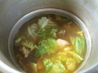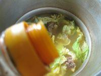 6.接着,合入切好的圆白菜,搁入咖喱块翻动一下煮开至熟。
